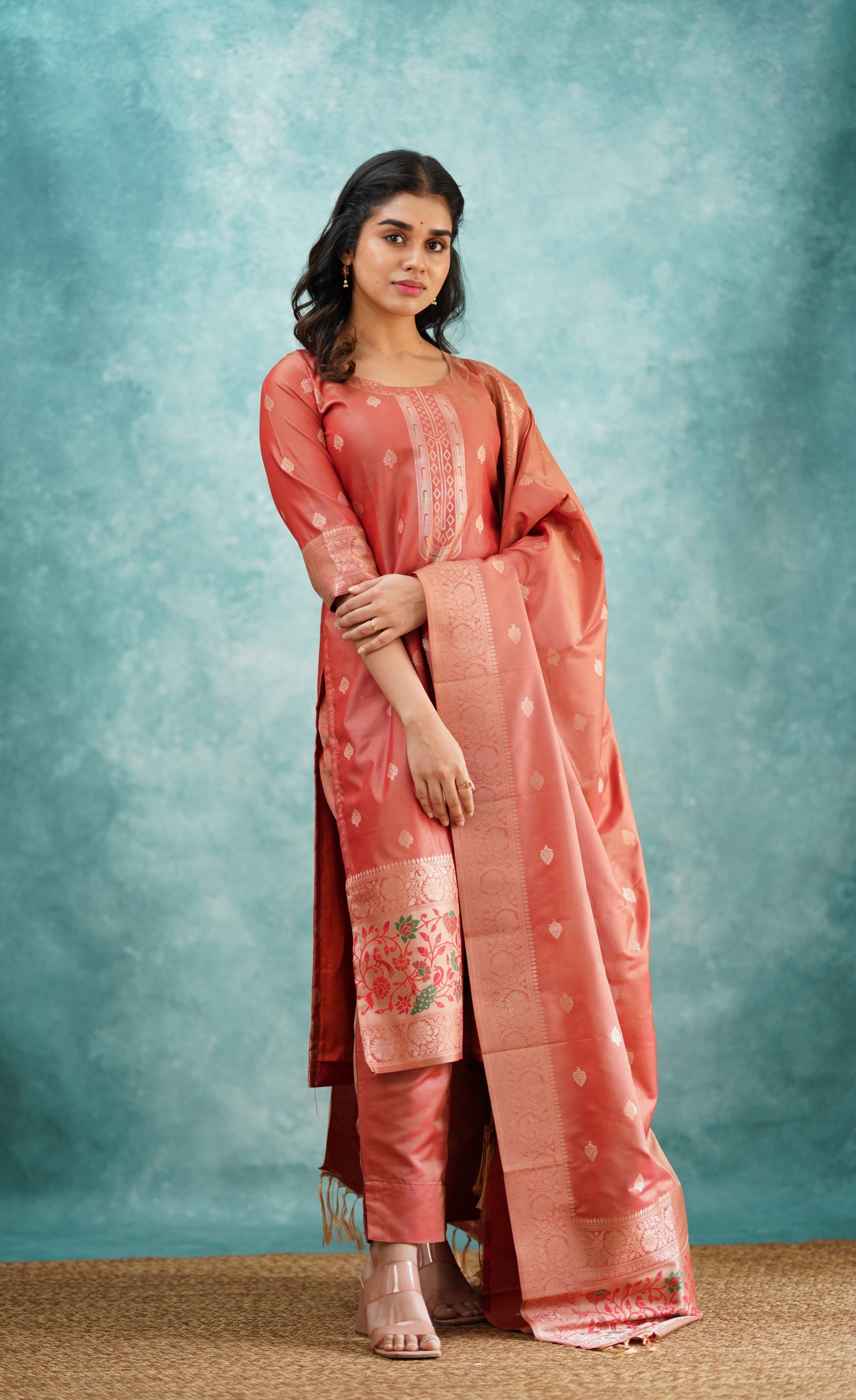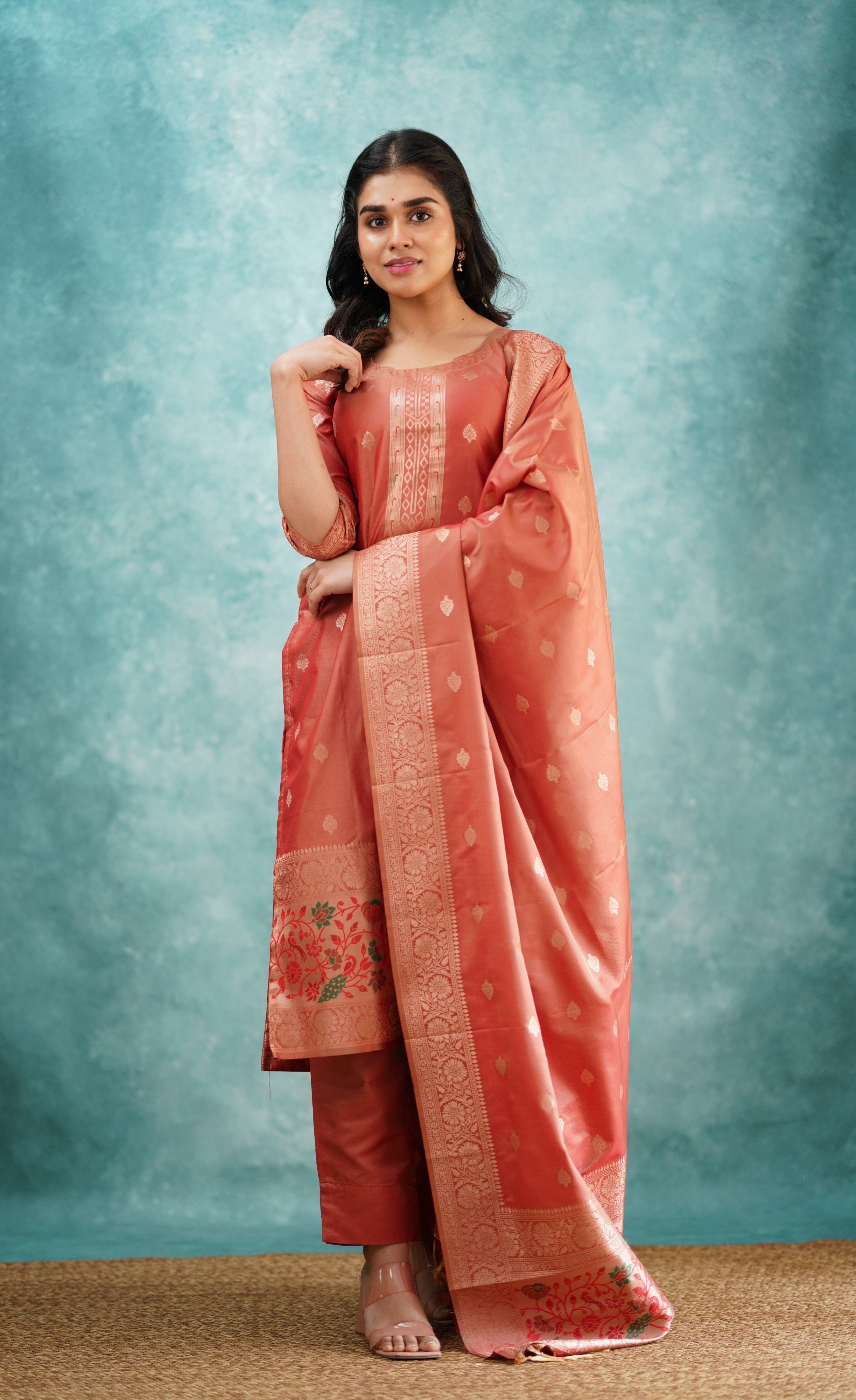 Sanvi - Peach Blended Paithani Silk Salwar Plus Size