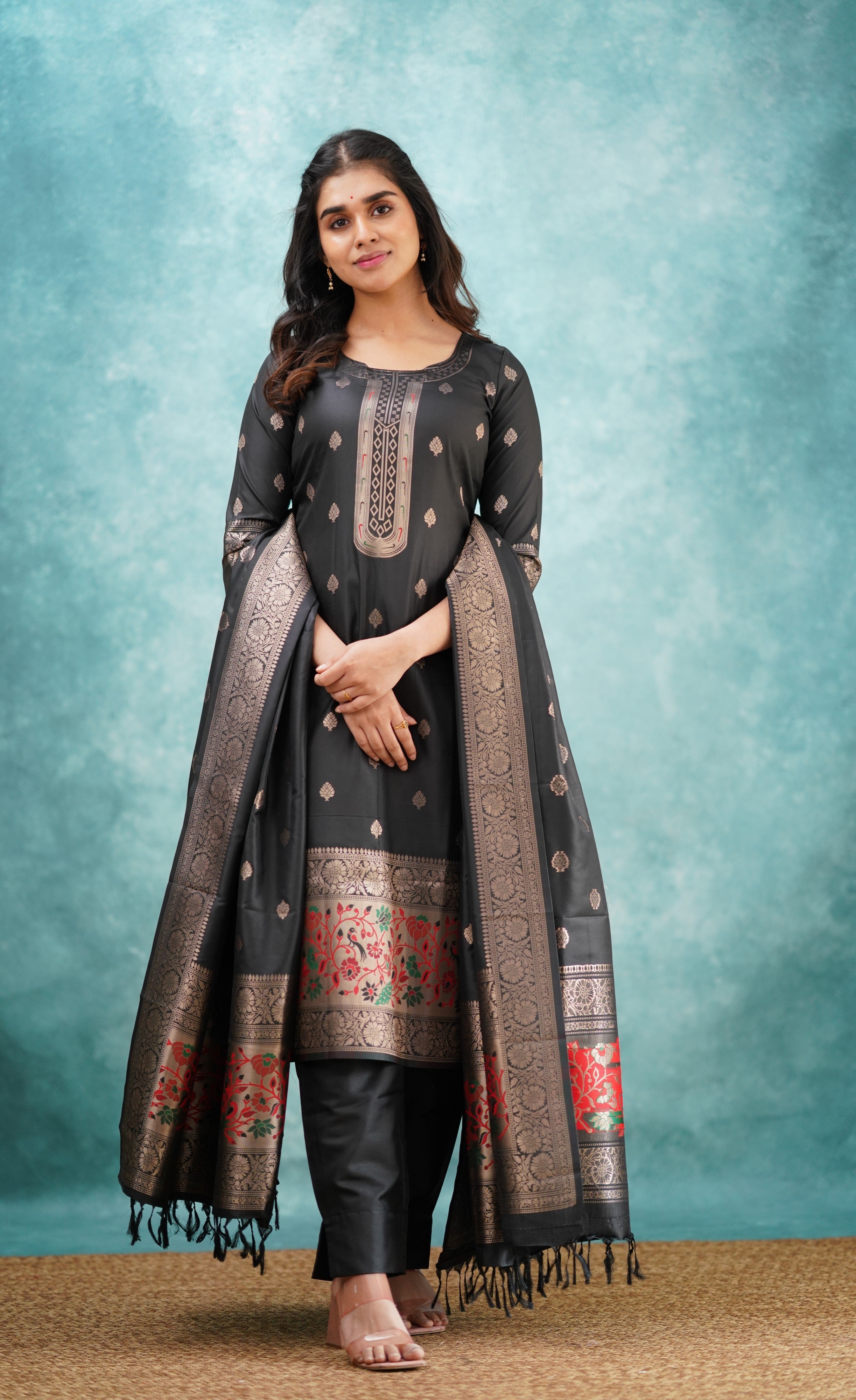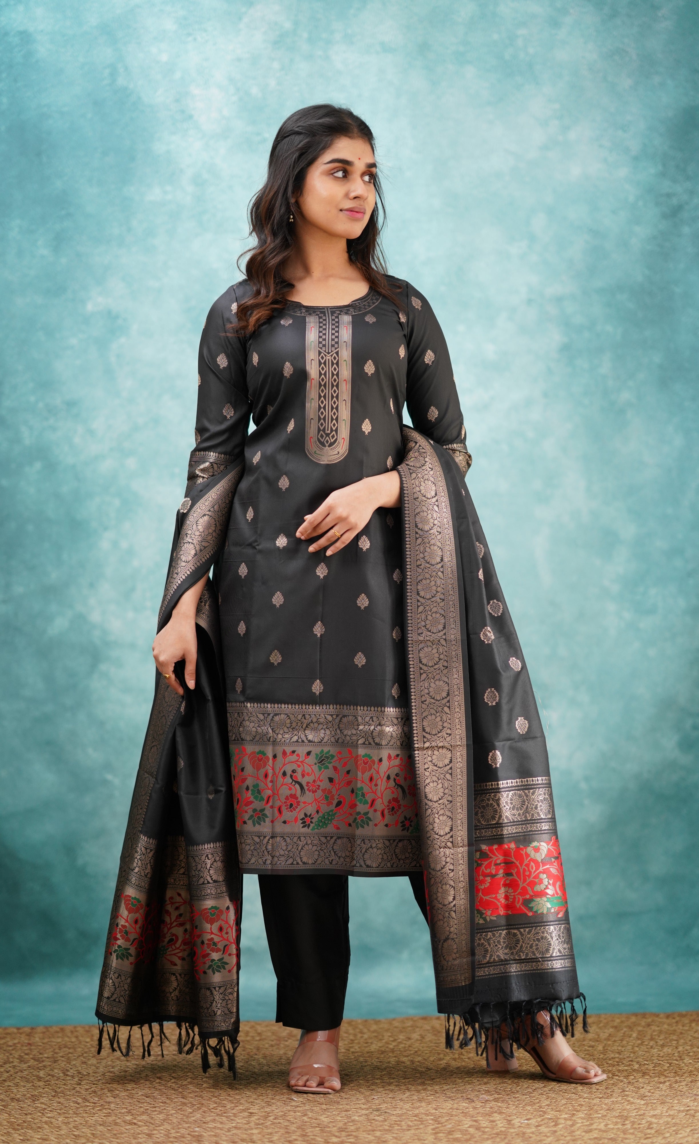 Sanvi - Black Blended Paithani Silk Salwar Plus Size